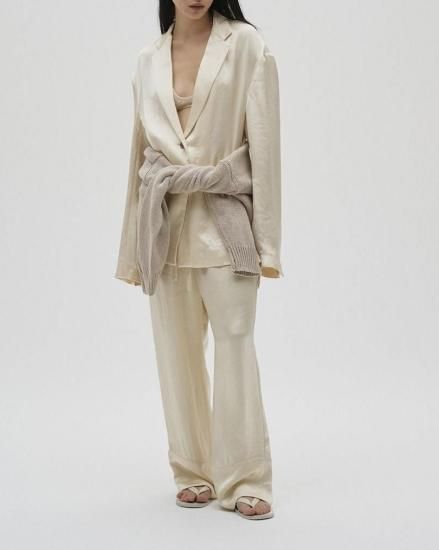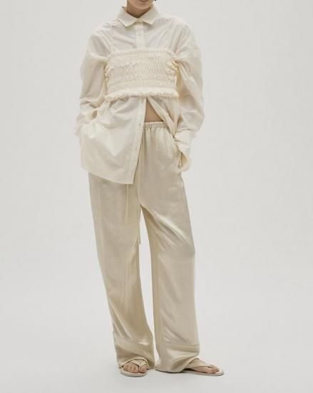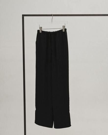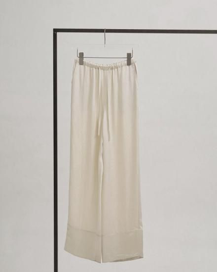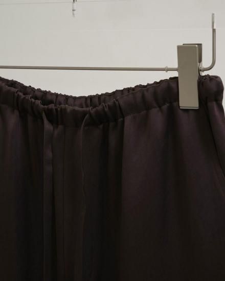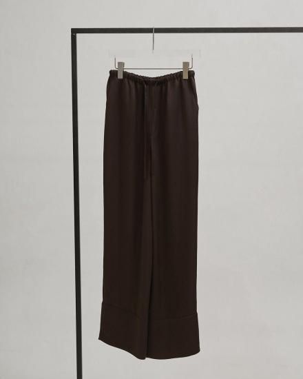国内の上質なサテン生地を使用したパンツ。リラックス感のある履き心地に加え、同素材のウエスト紐や裾の切り替えがさりげないアクセントに。ウエストはゴム仕様で着脱しやすく、シューズやトップスの合わせで幅広いシーンに馴染みます。新色のダークブラウンが加わり、同じ生地を使用したSatin Over Jacketと合わせたセットアップスタイルもおすすめです。