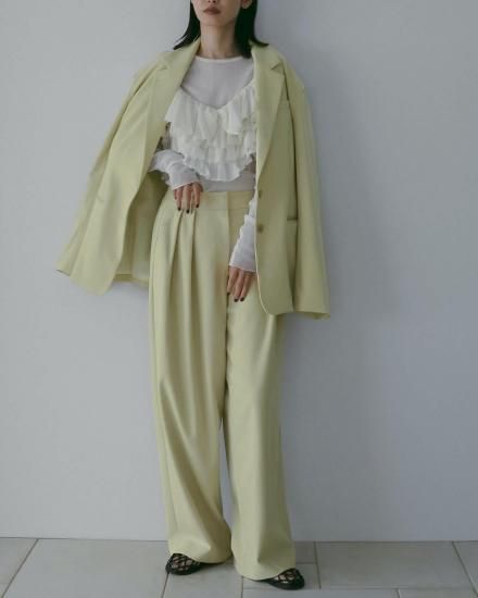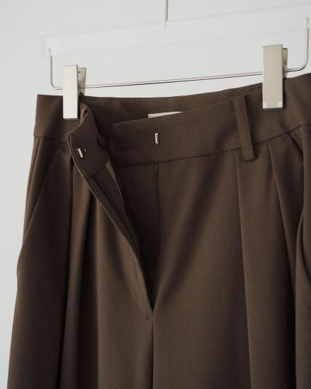 深めのインタックを2本入れた、ラフなシルエット。程良い肉感でシーズンレスで着ていただける着まわし力ある万能な1本。春夏の気分を一気に高めてくれる淡いクリームカラーと、上品で落ち着いたブラウンの2色で、幅広いスタイリングにマッチする1本。同素材のOver Tailored Jacketとセットアップで着用いただけます。卒入園・卒入学シーンなど、オケージョンシーンにもおすすめです。"