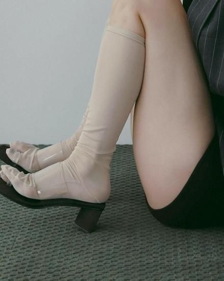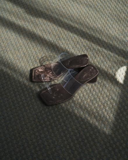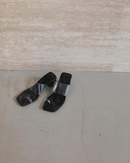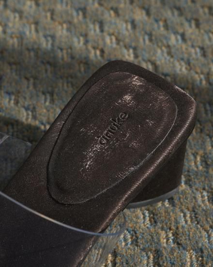 クリア素材とベロアのコンビが目を惹くヒールサンダル。太めのヒールと、しっかりと甲を覆ってくれる太めのアッパーに親指のホールデザインが、安定した履き心地に。ショートボトムやスカート合わせでしっかりとデザインを見せても、クリア使いが抜け感を添え、履くだけで足元を印象的に見せてくれます。フルレングスのパンツと合わせた際も、ちらっと覗く親指のデザインがポイントに。インソールからヒールにかけてはベロアで、肌触りの良さも魅力。スクエアトゥでシックな雰囲気を纏えます。