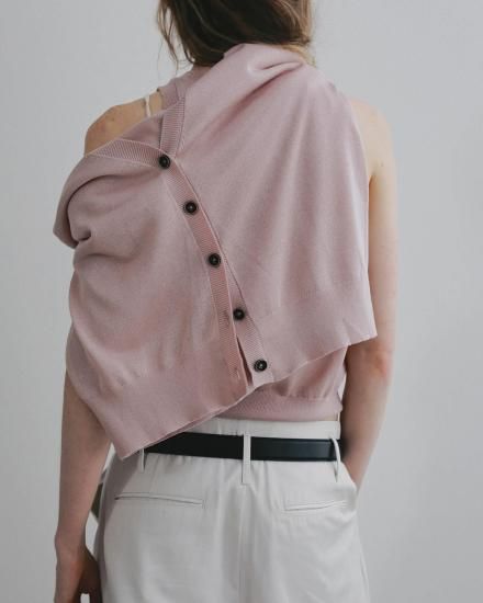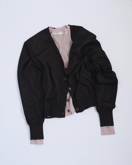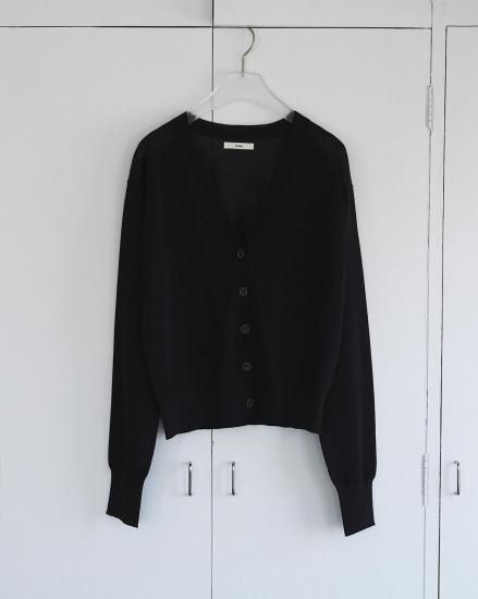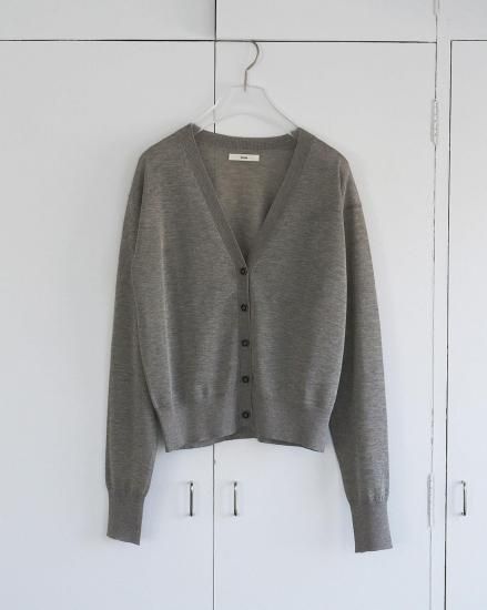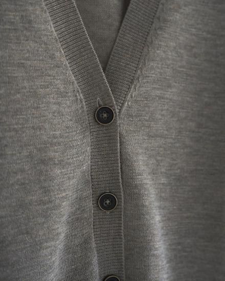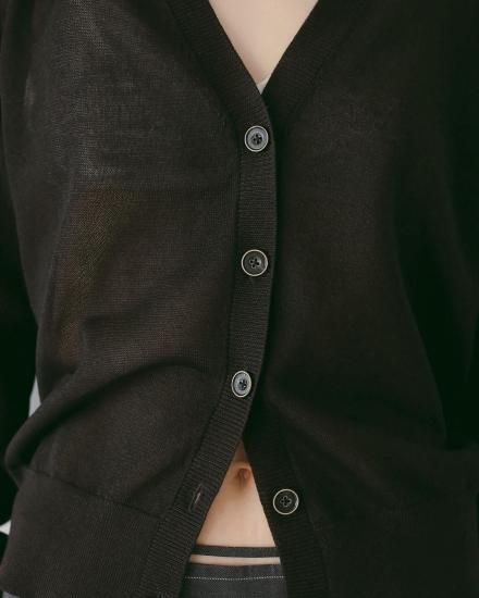 ハイゲージで仕上げた薄手のVネックカーディガン。着回し力あるミニマルなデザイン。ほんのりと透ける上品な編み地で、春の羽織りとしても活躍する一枚。程良くルーズなシルエットとデコルテが見えるVネックで、女性らしく抜け感ある印象に。前を留めた際も、フロントのデザインボタンがアクセントになり、プルオーバーとして着た際も、コーディネートに映えます。同素材のHighgauge Sheer Tanktopとのレイヤードスタイルも楽しんでいただきたい一着。肩にかけたり、腰に巻いたり、スタイリングのポイントとして着回していただくのもおすすめです。
