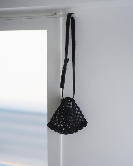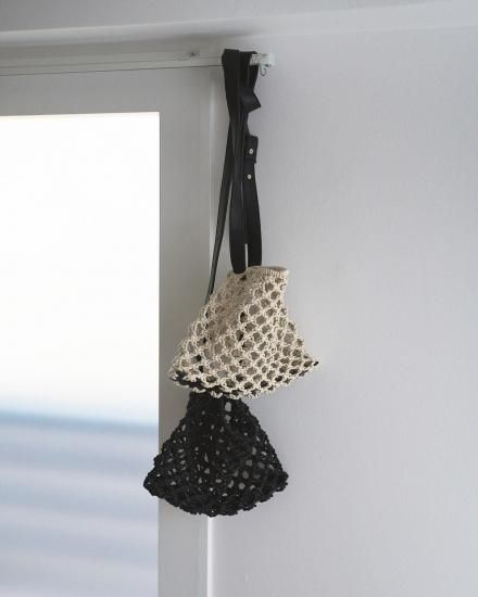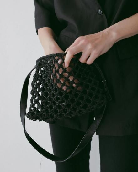 "マクラメ編みで仕上げたシーズンムード高まるミニバッグ。エコレザーとのコンビで、肩紐は長さ調節も可能です。コンパクトなサイズと夏らしい涼やかなルックスで、スタイリングのポイントとして活躍します。シンプルな着こなしも、これ一つで一気にこなれた印象に。