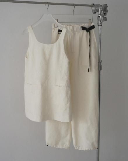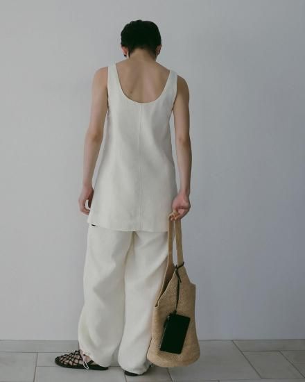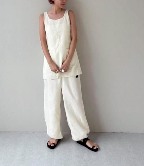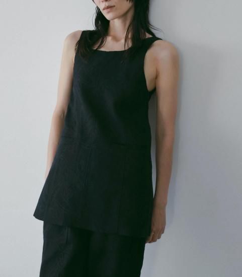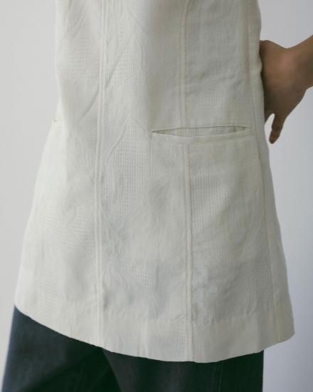 国内で織り上げたジャカード素材を使用したチュニックトップス。ワントーンで仕上げた大柄を立体的に織り上げた、奥行きある仕上がりが特長的な、こだわりのオリジナル素材です。広めの開いたスクエアネックが、女性らしさをプラス。トレンド感あるチュニック丈で一気にこなれた印象に。同素材のJacquard Drawstring Pantsとセットアップで着ていただくのもおすすめ。簡単にスタイリングが完成し、モード着こなしに。